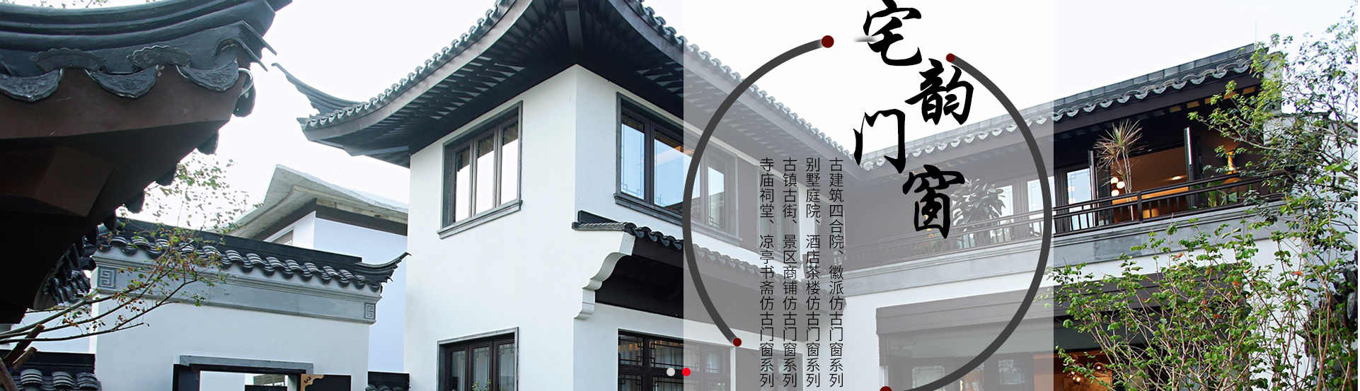专业制作与加工销售为一体的仿古铝合金门窗厂家,铝木仿古门窗,隔热断桥铝门窗,金刚纱一体窗,中空内置百叶窗,金刚纱窗,移门,中式花格,古建挂落,仿古护栏,中式铝金金美人靠座椅,中式凉亭,仿古构件等系列产品。